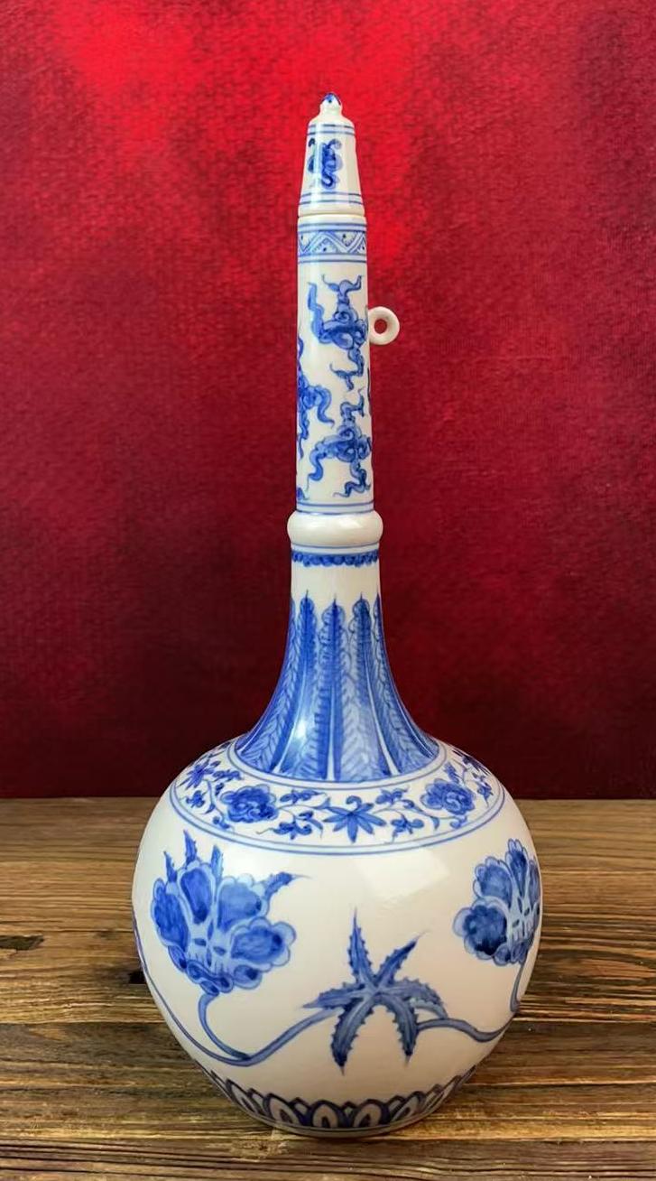 名称:明成化青花秋葵纹长颈瓶
