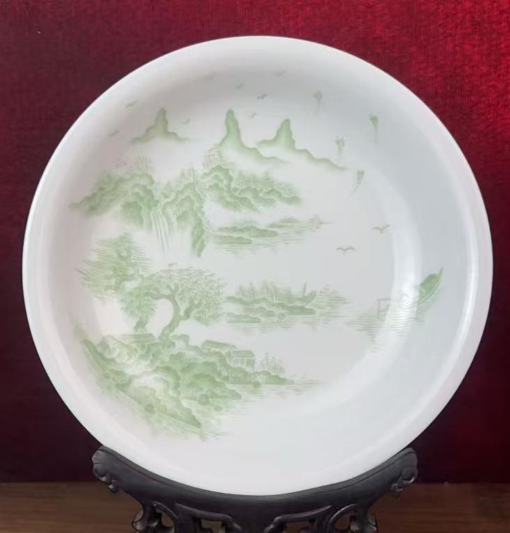 名称:清乾隆绿彩山水纹盘