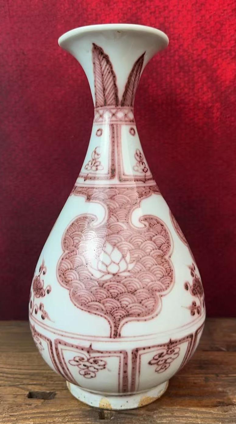 元釉里红开窗海水纹玉壶春瓶
