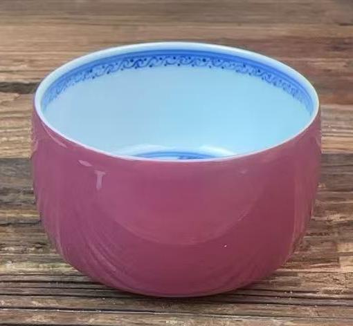 清雍正外胭脂红釉内青花鱼藻纹杯