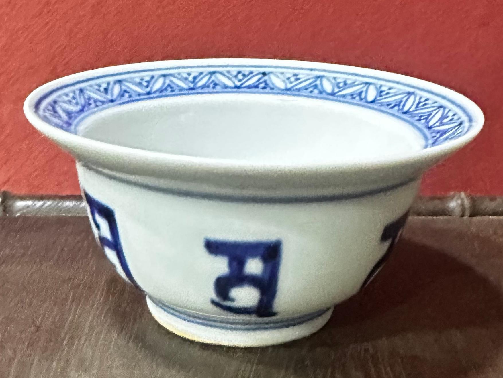 名称:明宣德青花梵纹撇口杯