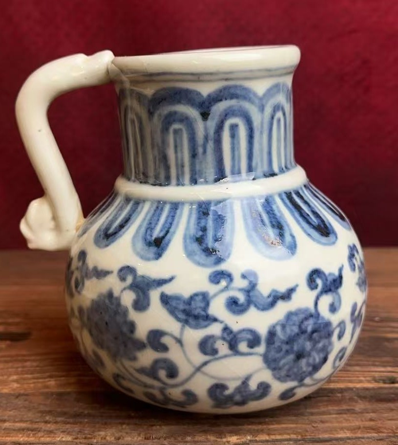 明早期青花缠枝花卉纹花浇
