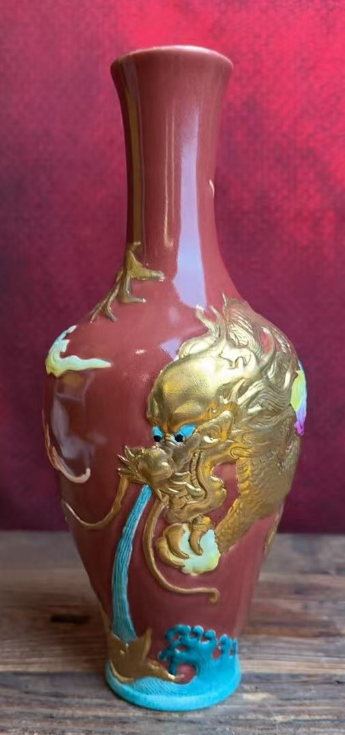 名称:清雍正粉彩描金浮雕龙纹长颈瓶