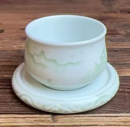 名称:清乾隆绿彩山水纹盏托