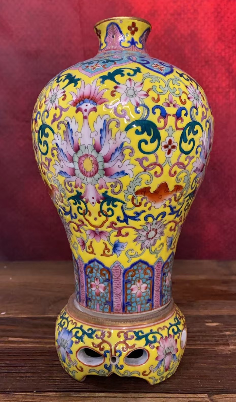 名称:清乾隆黄地珐琅彩花卉纹转体瓶