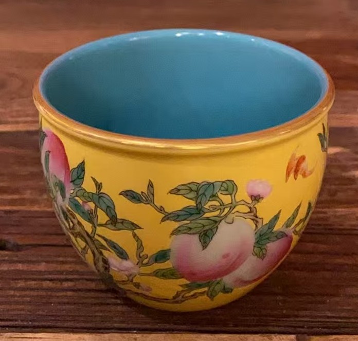 名称:清乾隆黄地珐琅彩福寿纹杯