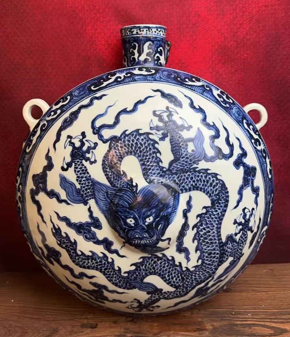 名称:明永乐青花云龙纹壁瓶
