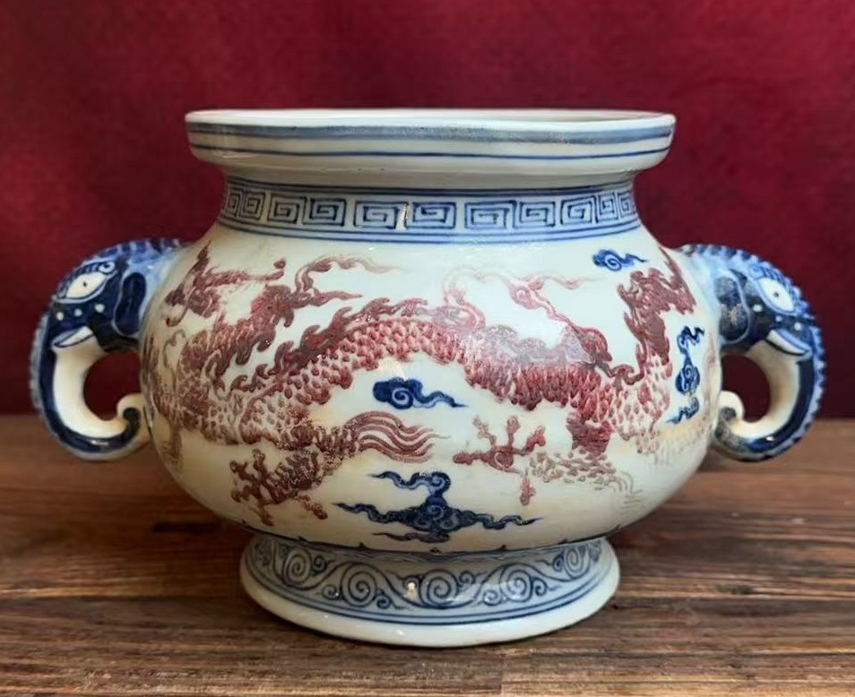 明宣德青花釉里红云龙纹簋式炉