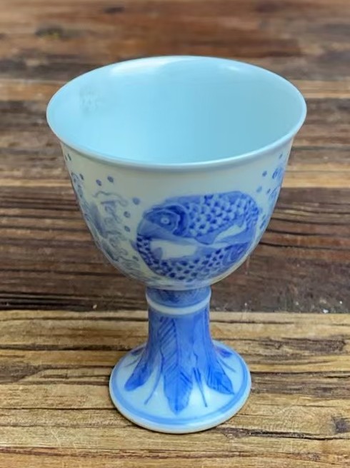 名称:明成化青花双鱼纹高足杯