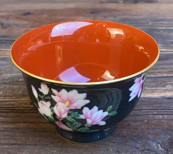 名称:清乾隆墨地粉彩花卉纹杯