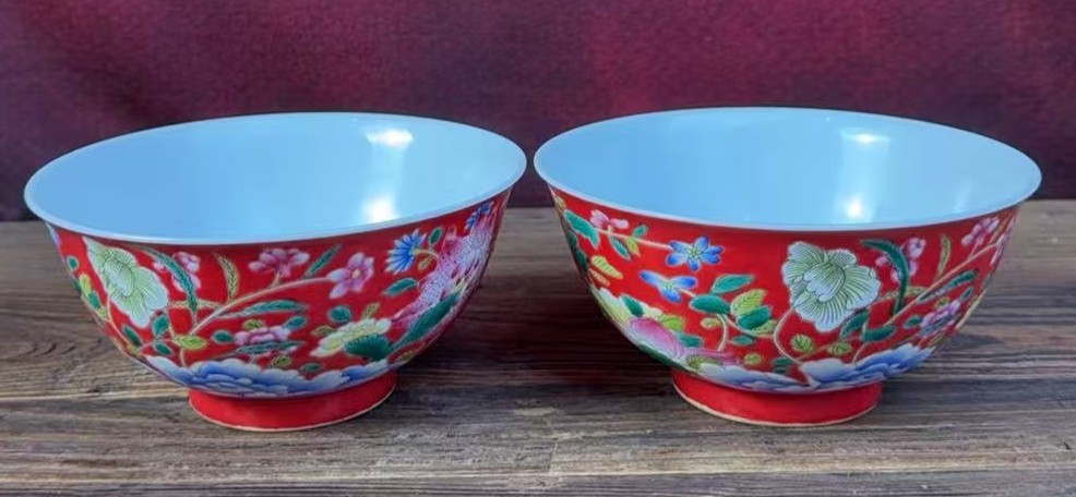 名称:清康熙珊瑚红地珐琅彩花卉纹碗