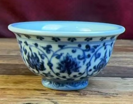 名称:明永乐青花缠枝莲纹压手杯