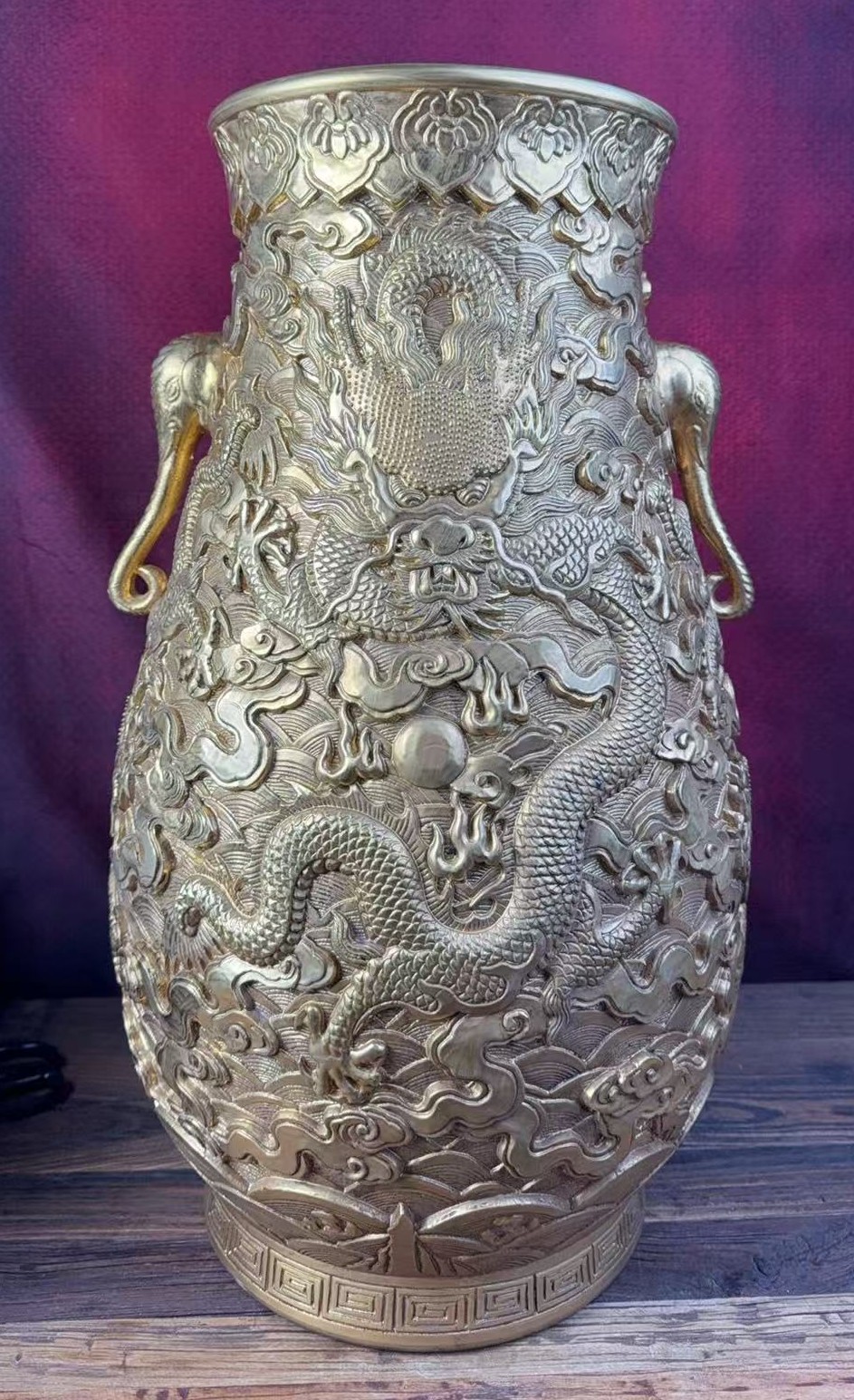 名称:清乾隆浮雕描金五龙纹象耳尊