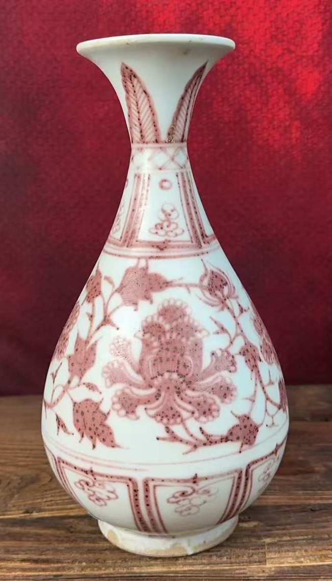 名称:元釉里红缠枝花卉纹玉壶春瓶