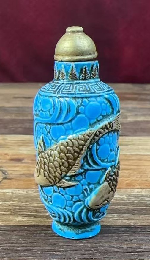 名称:清乾隆孔雀蓝釉鼻烟壶