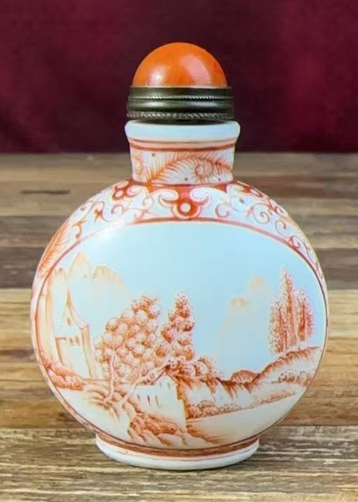名称:清乾隆矾红山水纹鼻烟壶