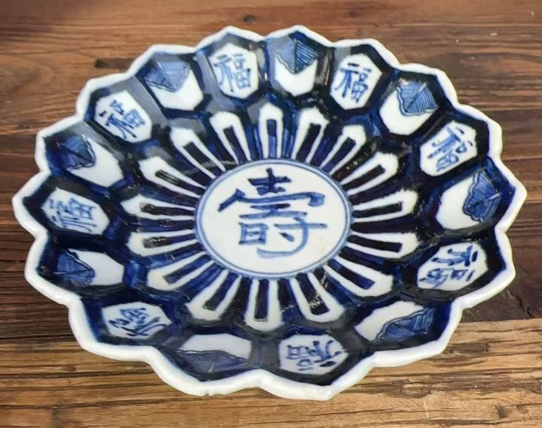 名称:明万历青花福寿纹花口盘