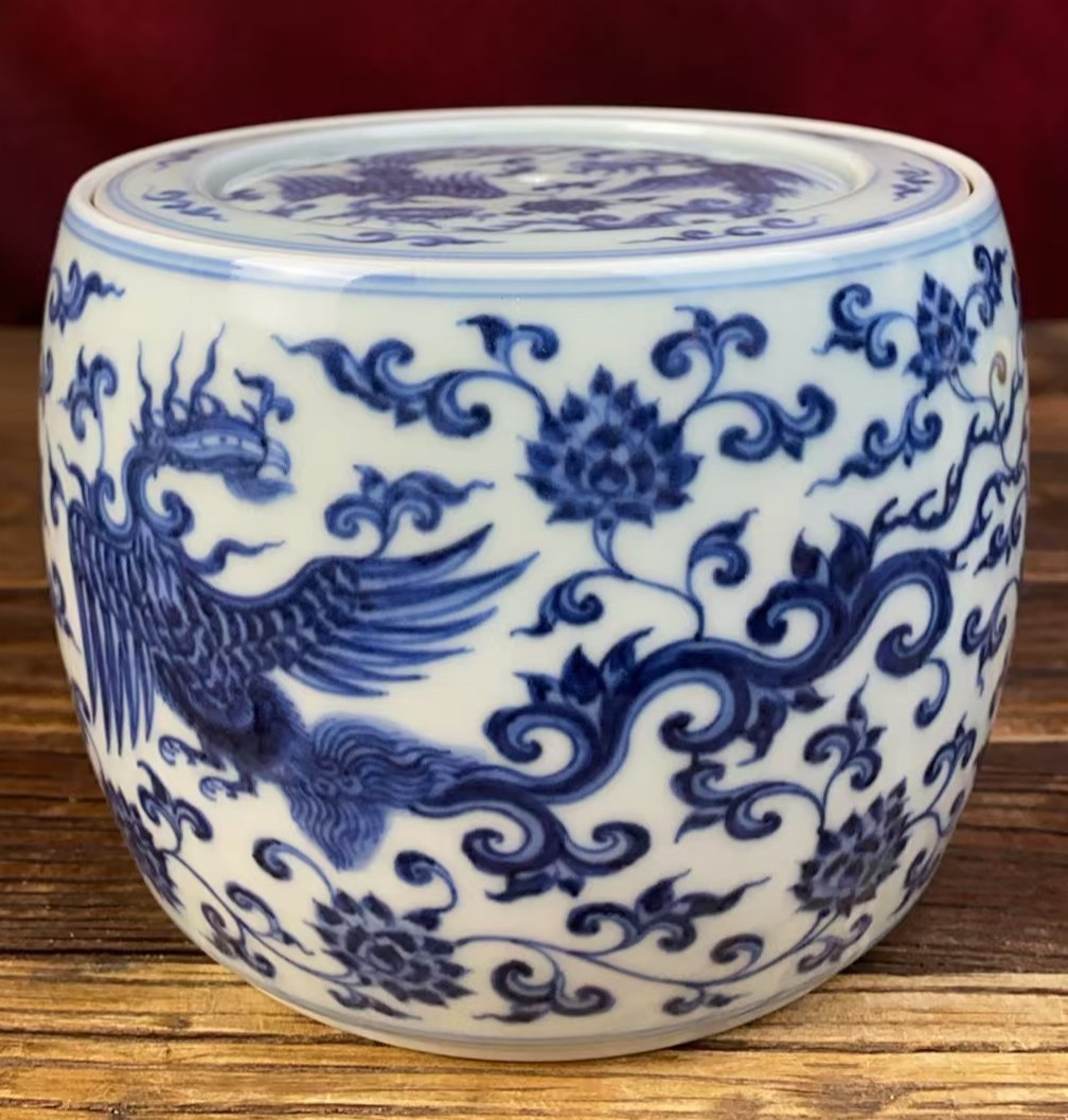 名称:明成化青花缠枝莲双凤纹蛐蛐罐