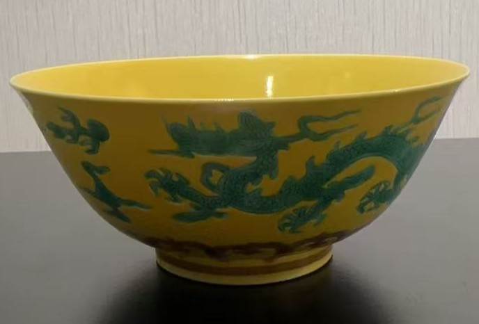 名称:明弘治黄地绿龙纹碗
