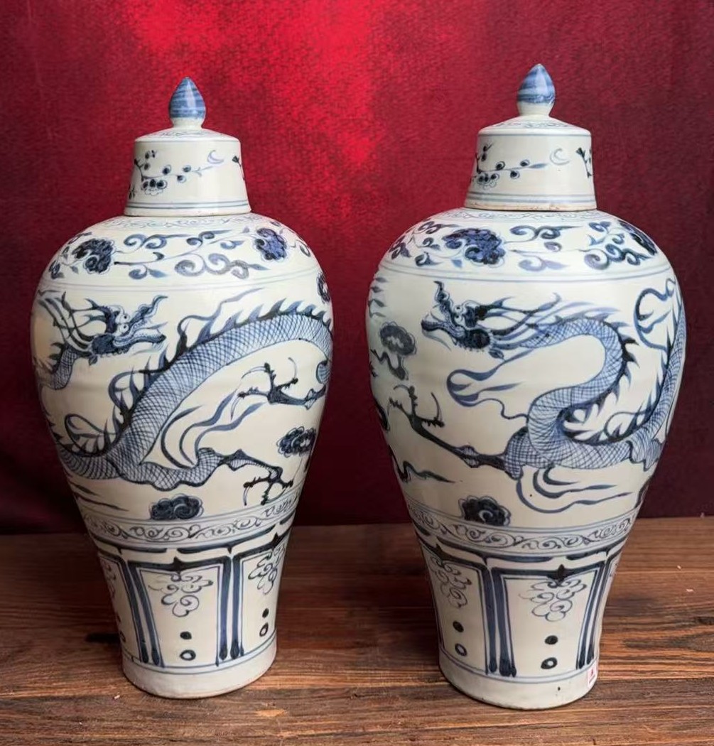元青花龙纹带盖梅瓶