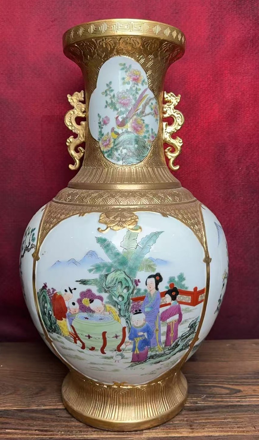 名称:清乾隆珐琅彩描金开窗人物纹双耳瓶