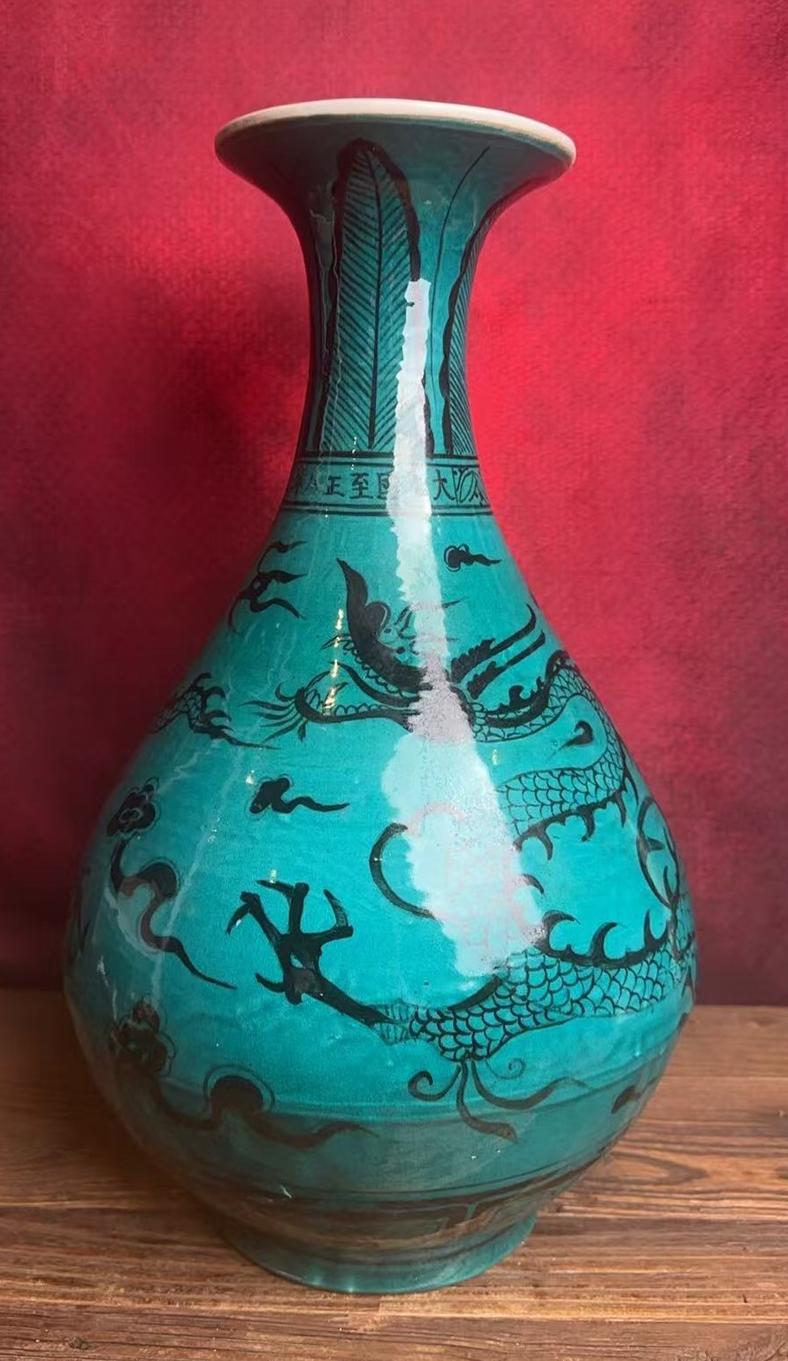 元孔雀蓝釉墨彩龙纹玉壶春瓶