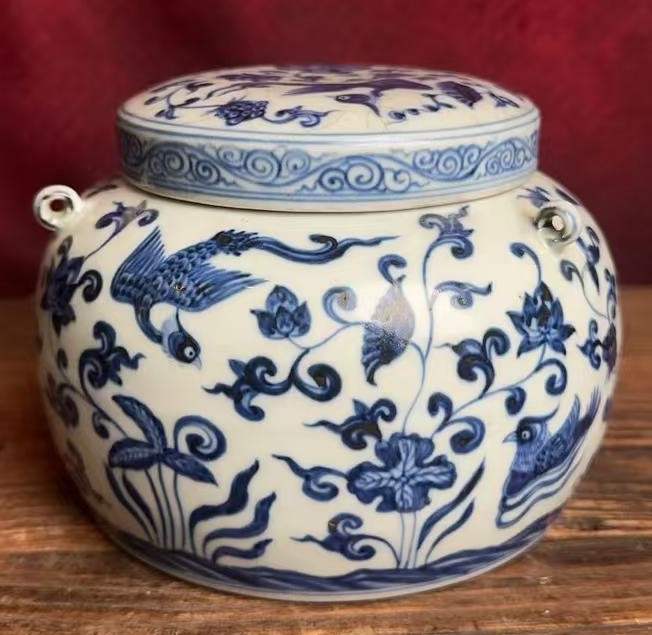 名称:明宣德青花鸳鸯戏莲纹盖罐