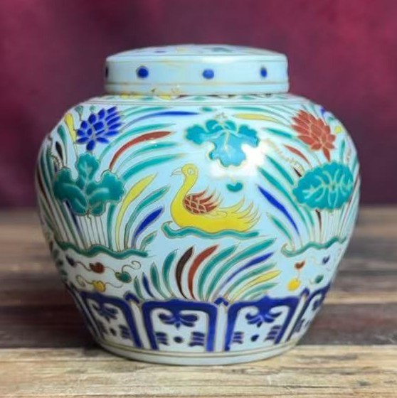 明成化珐琅彩鸳鸯戏莲纹盖罐