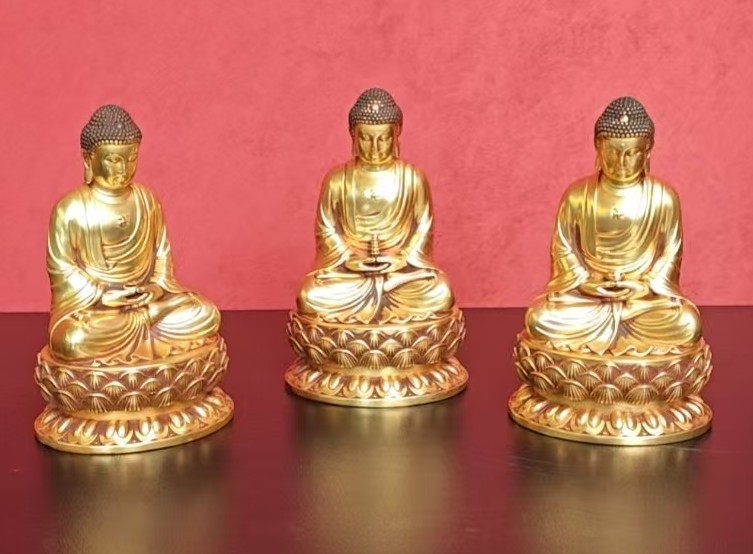 明·铜鎏金三世佛造像