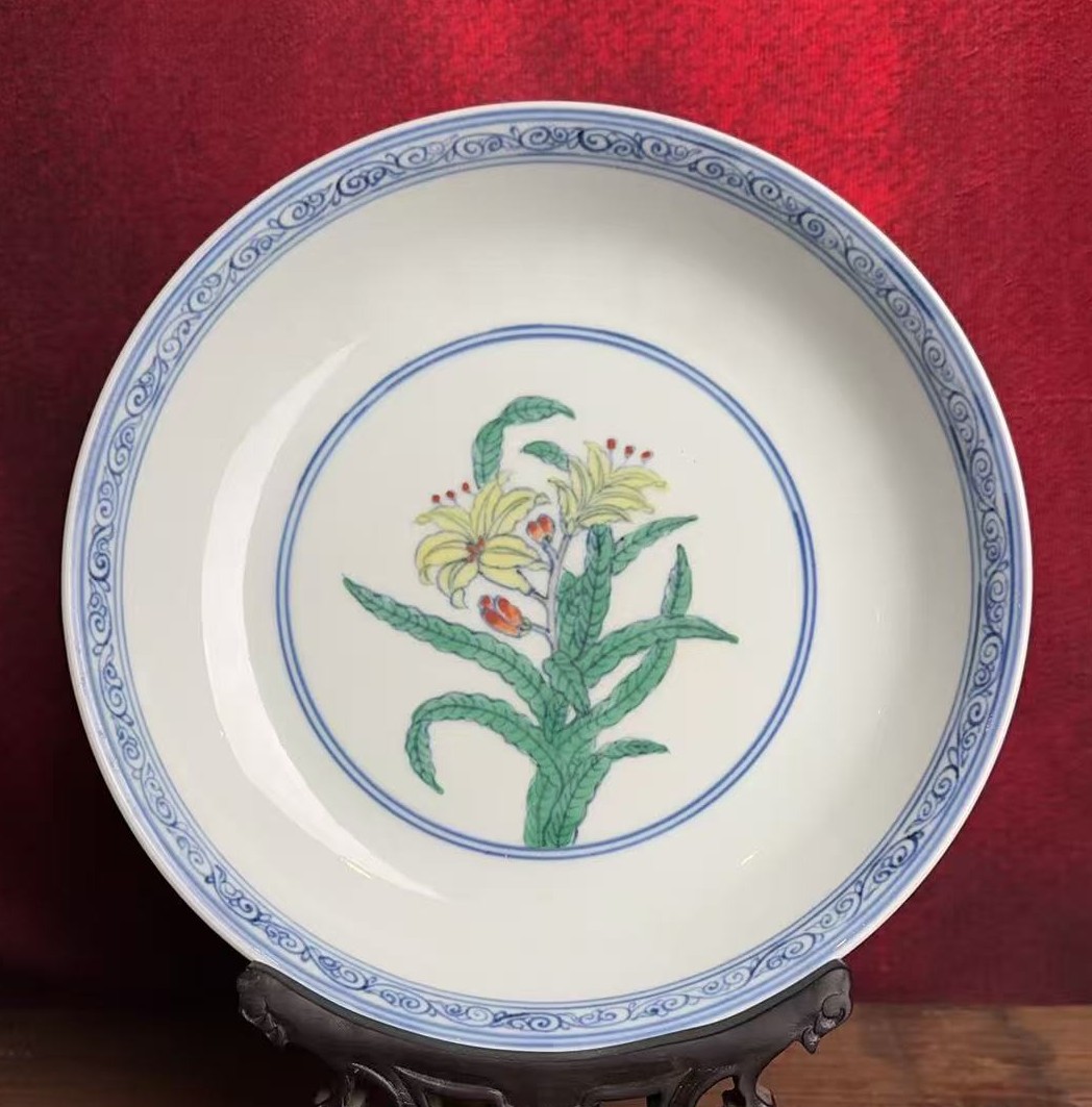 名称:明成化斗彩花卉纹盘