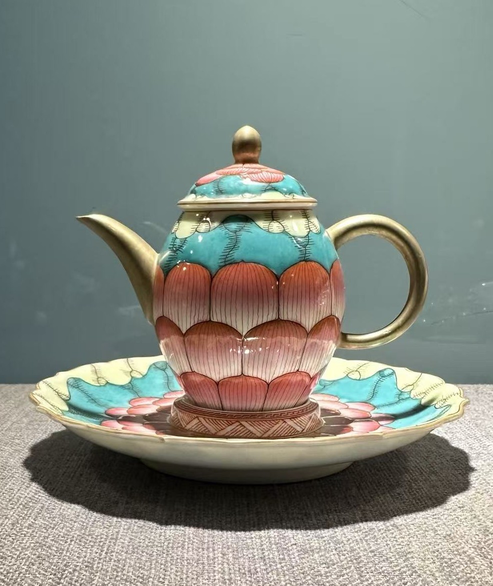 清乾隆珐琅彩花卉纹带托执壶