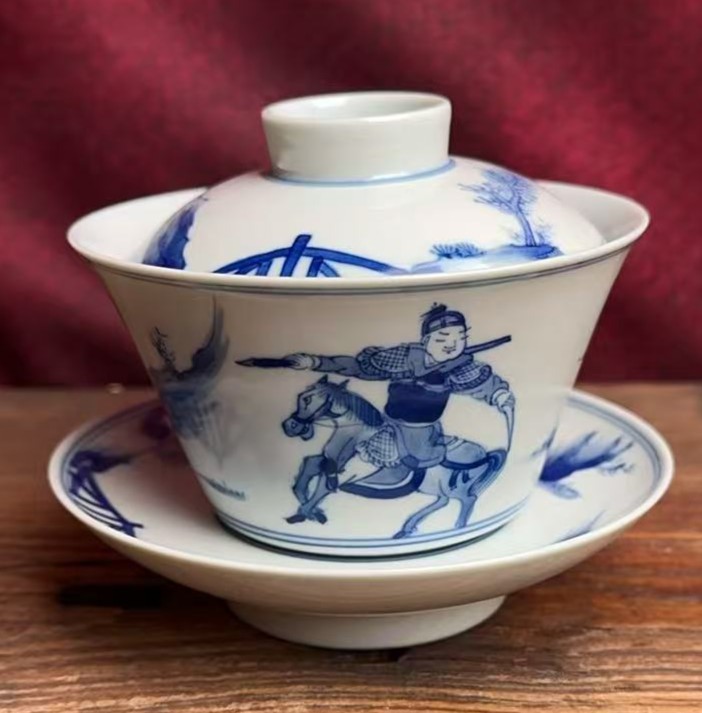 名称:清康熙青花人物纹盖碗