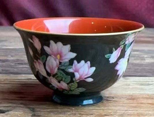 清乾隆墨地珐琅彩花卉纹杯
