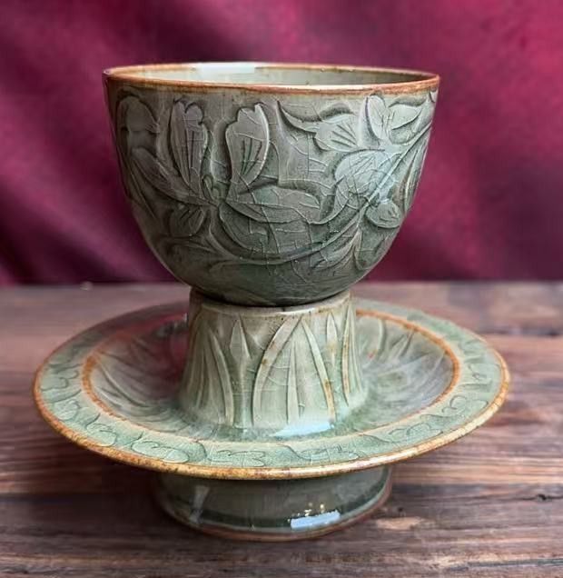 耀州窑刻花盏托