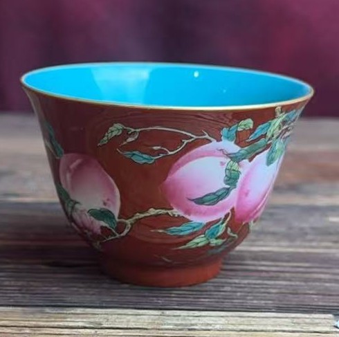 名称:清乾隆珊瑚红地珐琅彩桃纹杯