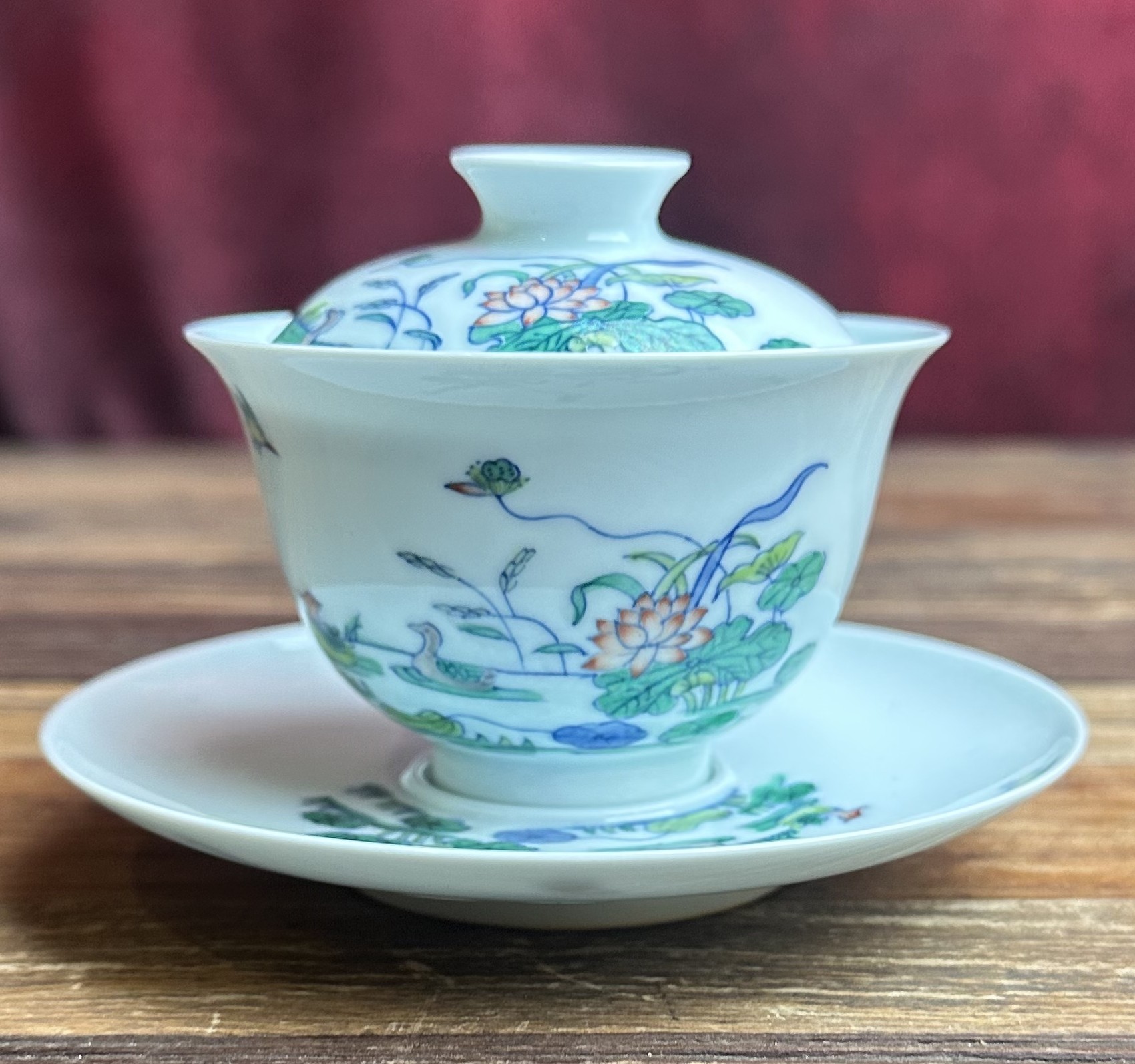 名称:清康熙斗彩莲池鸳鸯纹盖碗