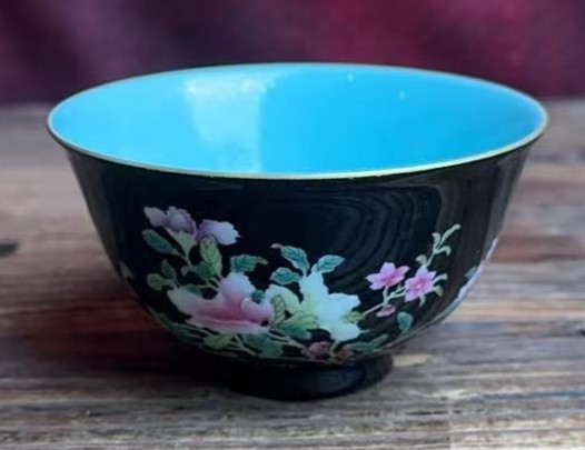 清康熙御制墨地珐琅彩花卉纹杯