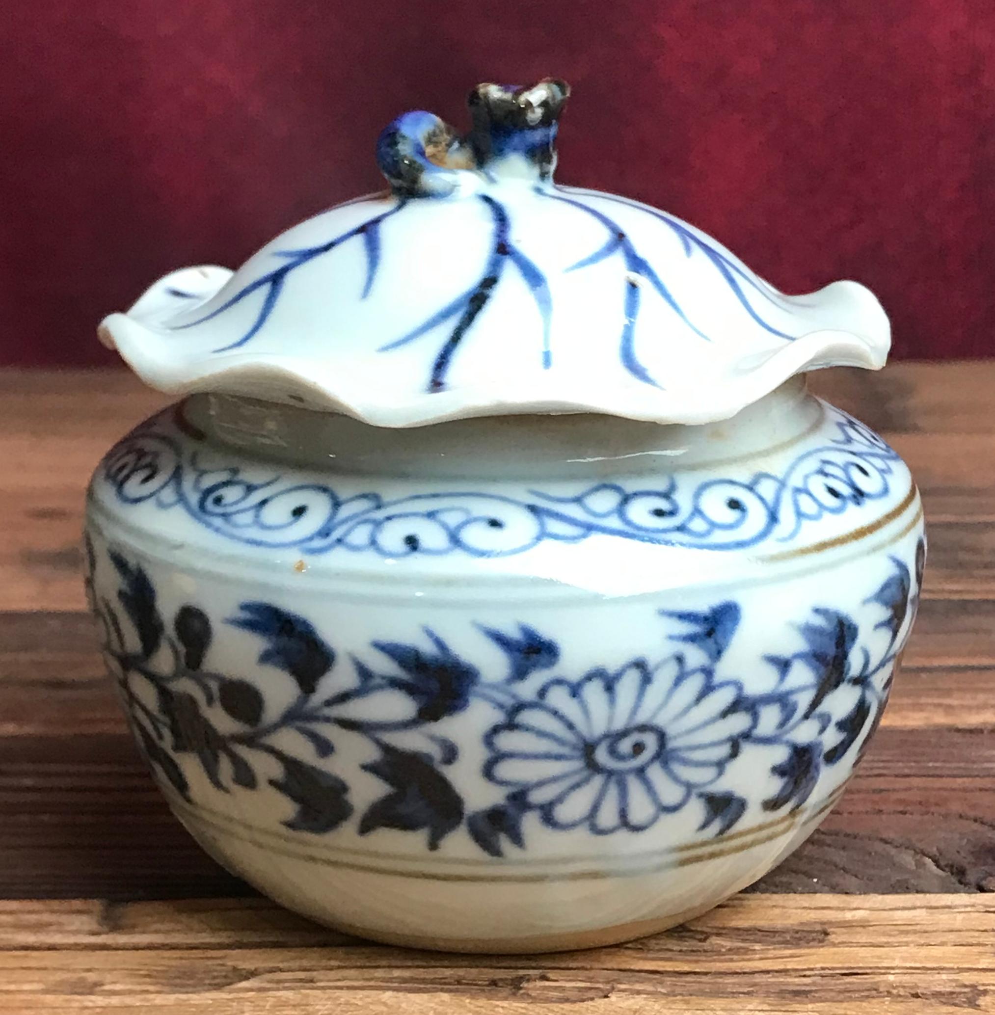 名称:元青花缠枝花卉纹荷叶罐