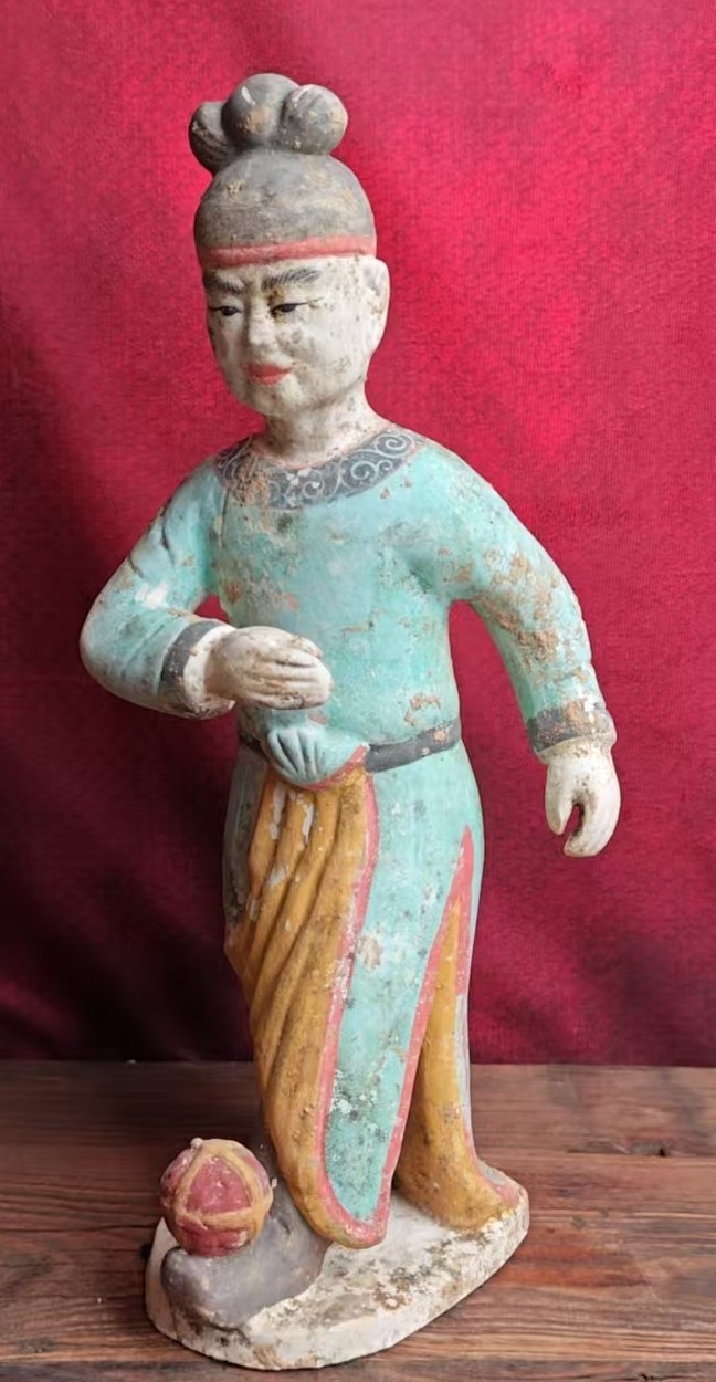 名称:巩县窑三彩蹴鞠俑