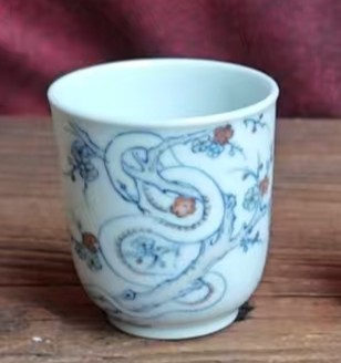 名称:清雍正青花釉里红瑞兽纹杯