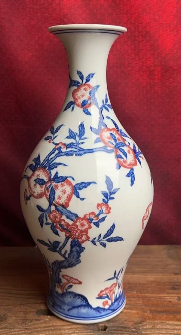 名称:清乾隆青花釉里红福寿纹橄榄瓶