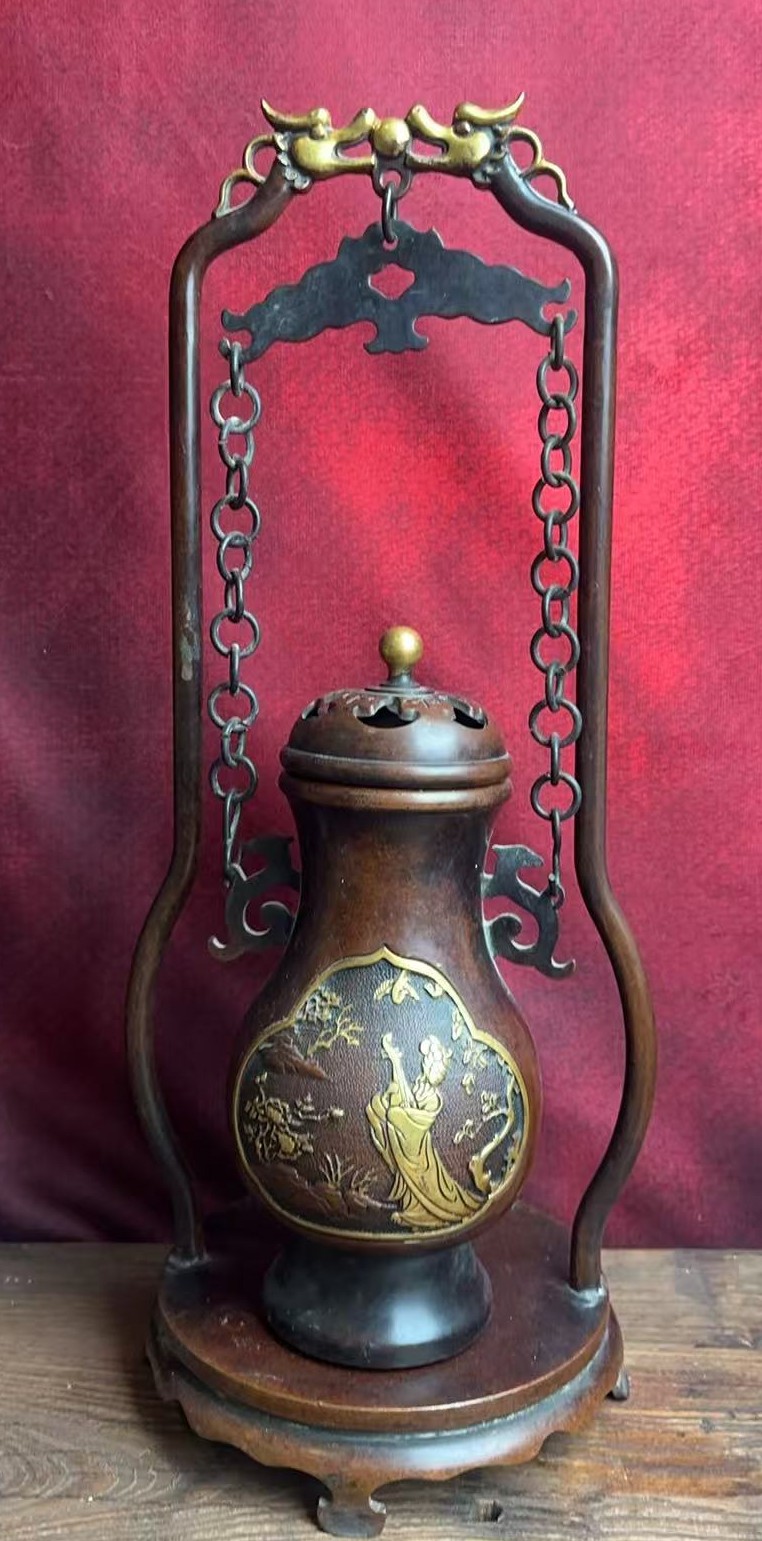 名称:明·琴书侣款铜鎏金吊瓶