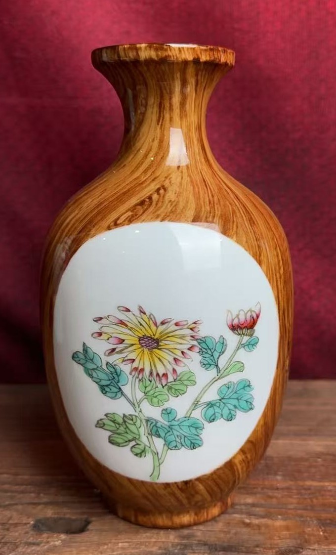 名称:清乾隆木纹釉粉彩开窗花卉纹瓶