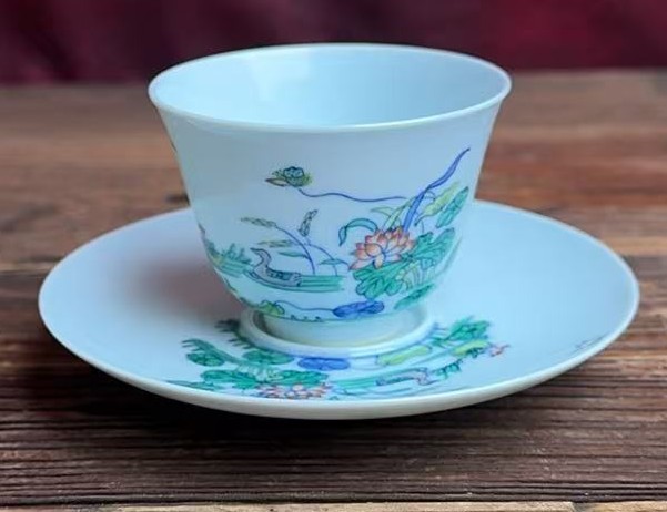 名称:清康熙斗彩鸳鸯戏莲纹盏托