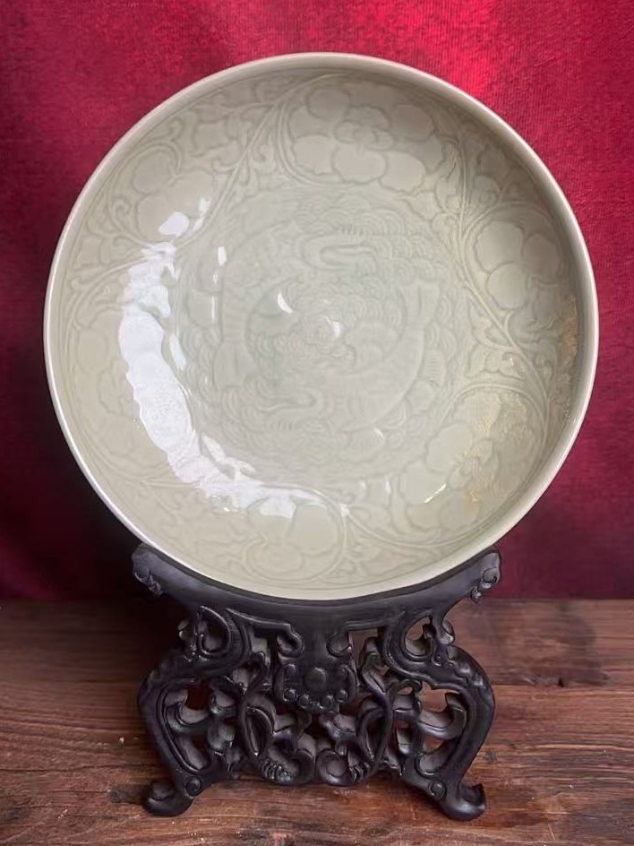 名称:越窑刻花双鱼纹盘