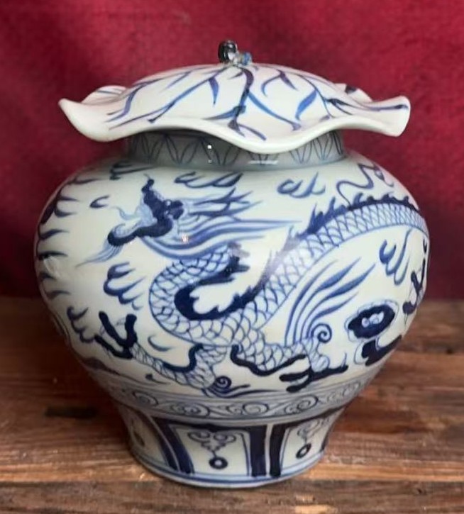 名称:元青花龙纹荷叶罐