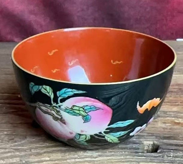 名称:清康熙墨地珐琅彩福寿纹杯