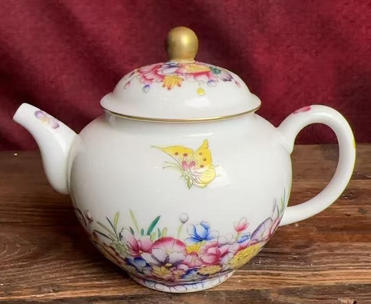 清乾隆粉彩花蝶纹执壶