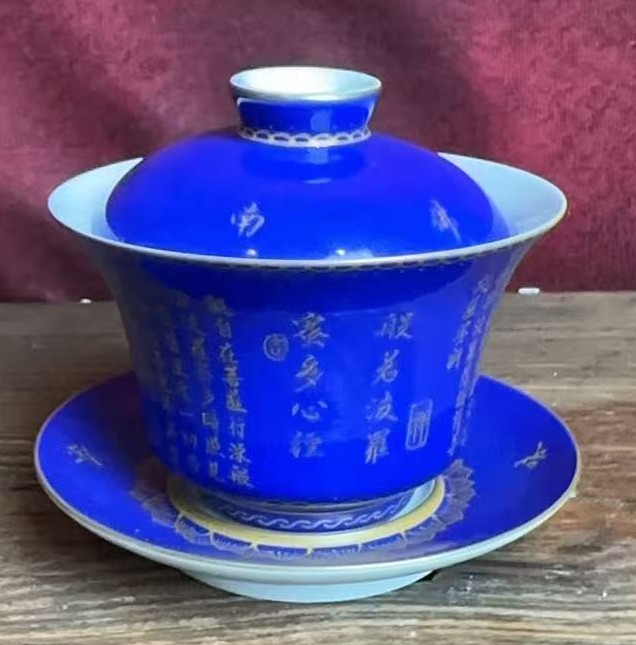名称:清乾隆蓝釉描金诗词纹盖碗