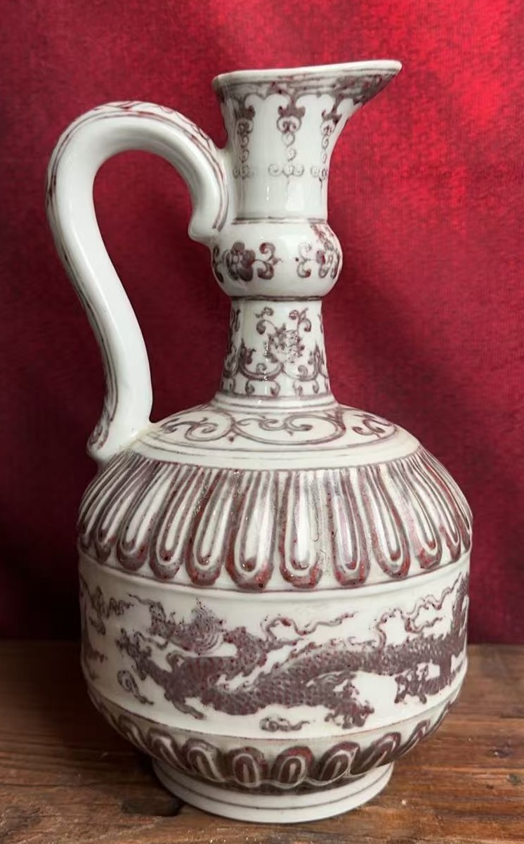 明宣德釉里红龙纹花浇